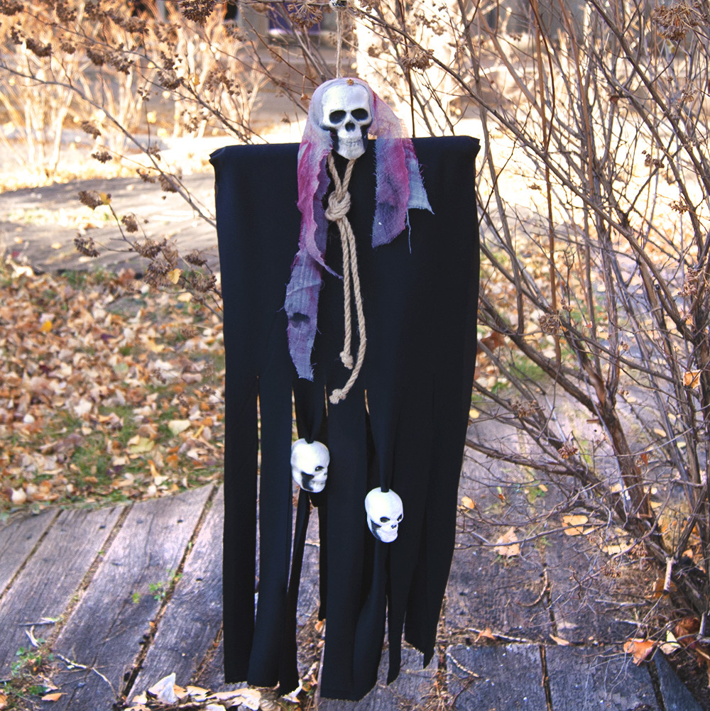 Декор для хеллоуїна Примарний Череп (95см) чорний з сірим 10082 - прикраса на Хеллоуїн із серії підвісного декору з петелькою для підвішування на вечірку в стилі Santa Muerte або Хеллоуїн. Примарний череп виготовлений з якісного матеріалу, який не розсипається, пінополістиролу, балахон-штучний трикотаж, косинка-сатин. Особливого шарму висячої смерті надають поєднання шпагату на шиї з гіпюром та черепами. Ідеально підходить для прикраси арт-простір клубу, фото зони на Хеллоуїн. Вражаюче підвісний декор виглядає у клубах при освітленні флюоресцентними лампами – білий колір черепів та балахона світиться. Просто повісьте на двері чи стіну, щоби здивувати ваших гостей під час свята Дня всіх мертвих. Рекомендуємо до цього готичного підвісного черепа ще павутиння, яке допоможе Вам відтворити містичну атмосферу. Інтернет-магазин Карнавал Приколів пропонує купити висячі прикраси для дому з привидами за найкращими цінами в Україні.